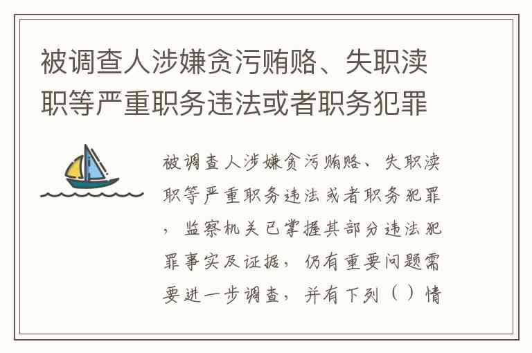 被调查人涉嫌贪污贿赂、失职渎职等严重职务违法或者职务犯罪,监察机关已掌握其部分违法犯罪事实及证据,仍有重要问题需要进一步调查,并有下列()情形之一的,经审批,监察机关依法可以将其留置在特定场所。A.涉及案情重大、复杂的 B.可能逃跑、自杀的 C.可能实施新的犯罪的 D.可能有其他妨碍调查行为的
