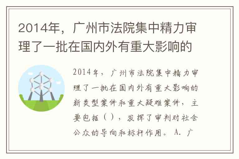 (注:选项C“三一”驰名商标保护案、D“IPAD”商标权属纠纷案未在2014年广州法院审理的重大案件中提及,故排除。)