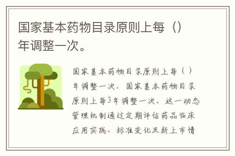 国家基本药物目录原则上每3年调整一次。这一动态管理机制通过定期评估药品临床应用实践、标准变化及新上市情况,确保目录始终与医疗需求同步。自2021年《国家基本药物目录管理办法(修订草案)》首次明确3年调整周期以来,最新政策仍延续这一规定,强调“调整周期原则上不超过3年”,既保持目录稳定性,又能及时纳入创新药物。