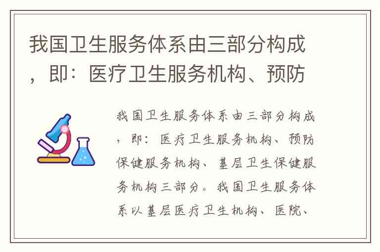 我国卫生服务体系由三部分构成,即:医疗卫生服务机构、预防保健服务机构、基层卫生保健服务机构三部分。