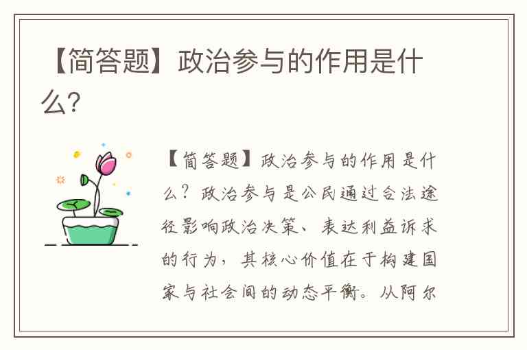【简答题】政治参与的作用是什么?