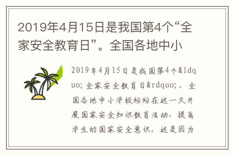 维护国家安全是全国各族人民的根本利益所在,也是每个公民的法定义务。2019年4月15日作为我国第4个“全民国家安全教育日”,各地中小学校开展相关教育活动,核心原因在于国家安全的重要性及公民参与的必要性。国家安全是国家生存与发展的保障,关系到国家政权稳定、经济发展和人民福祉,这对应题目中的③;同时,维护国家安全并非少数人的责任,而是需要每个公民的共同参与,包括通过教育提高青少年的安全意识,这对应题目中的①。