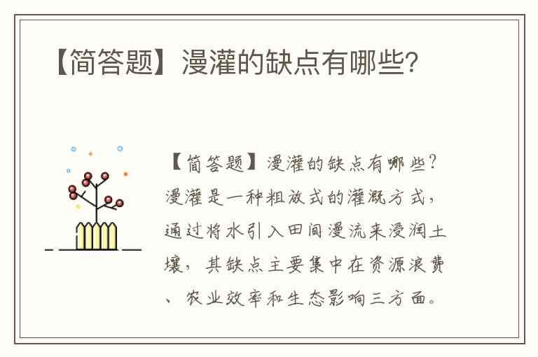 漫灌是一种粗放式的灌溉方式,通过将水引入田间漫流来浸润土壤,其缺点主要集中在资源浪费、农业效率和生态影响三方面。这种方式对水资源的利用率极低,仅为30%~50%,大量水分通过蒸发、渗漏流失,在干旱地区会加剧水资源短缺。同时,无节制的水分供给容易导致土壤板结和次生盐碱化,破坏土壤团粒结构,长期使用会使耕地质量下降。