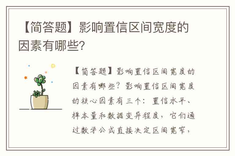 影响置信区间宽度的核心因素有三个:置信水平、样本量和数据变异程度,它们通过数学公式直接决定区间宽窄,反映了估计精度与可靠性的权衡关系。