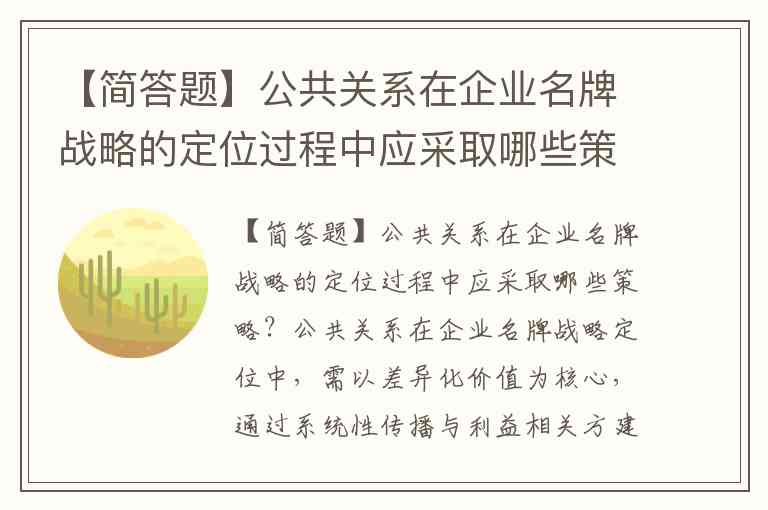 【简答题】公共关系在企业名牌战略的定位过程中应采取哪些策略?