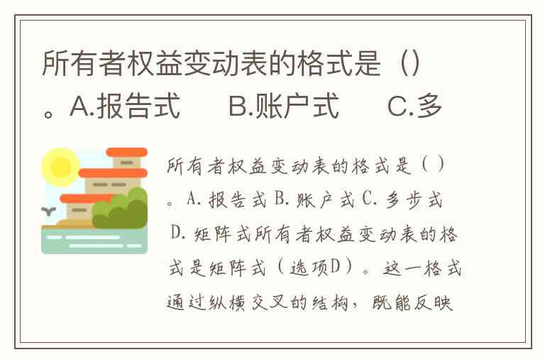 所有者权益变动表的格式是()。A.报告式 B.账户式 C.多步式 D.矩阵式