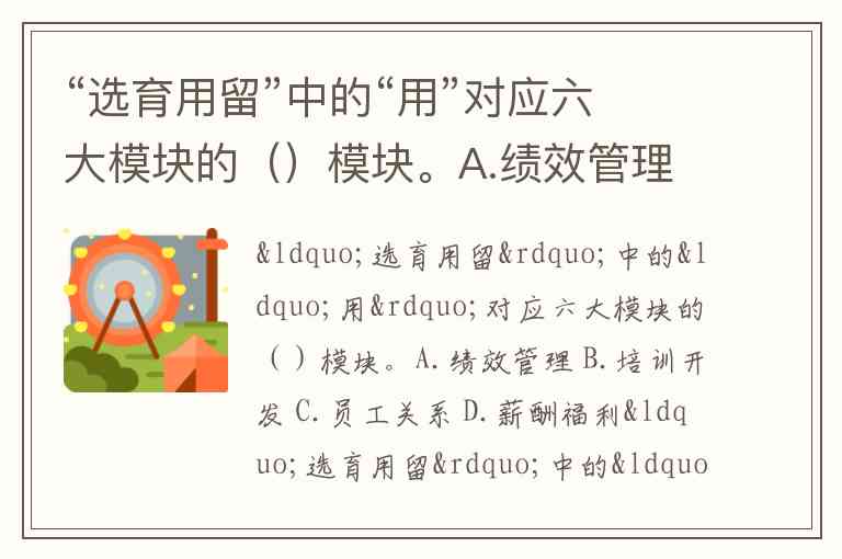 “选育用留”中的“用”对应六大模块的()模块。A.绩效管理 B.培训开发 C.员工关系 D.薪酬福利