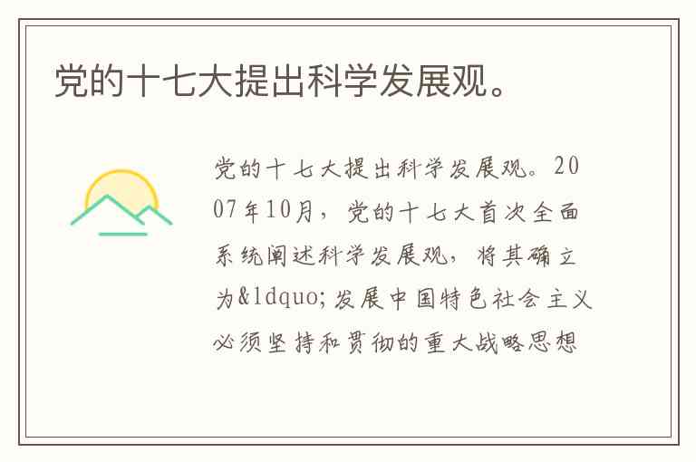 党的十七大提出科学发展观。