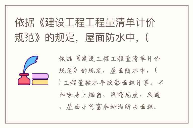 根据《建设工程工程量清单计价规范》,平屋顶的屋面防水工程量按水平投影面积计算,且不扣除房上烟囱、风帽底座、风道、屋面小气窗和斜沟所占面积。这一规则在多个权威解释中均有明确说明,例如平屋顶与斜屋顶(不包括平屋顶找坡)的计算方式存在区别:斜屋顶按斜面积计算,而平屋顶则统一采用水平投影面积。