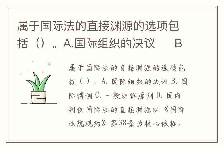 属于国际法的直接渊源的选项包括()。A.国际组织的决议 B.国际惯例 C.一般法律原则 D.国内判例