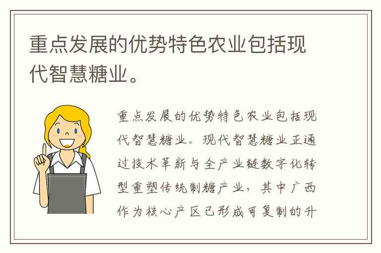 重点发展的优势特色农业包括现代智慧糖业。
