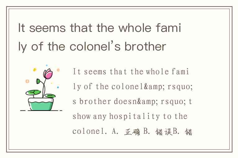 It seems that the whole family of the colonel’s brother doesn’t show any hospitality to the colonel. A. 正确 B. 错误