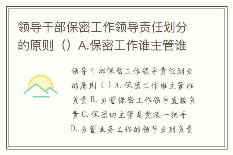 领导干部保密工作领导责任划分的原则()A.保密工作谁主管谁负责 B.分管保密工作领导直接负责 C.保密的主管是党政一把手 D.分管业务工作的领导分别负责