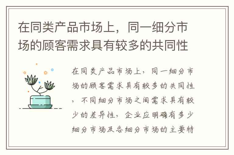 在同类产品市场上,同一细分市场的顾客需求具有较多的共同性,不同细分市场之间需求具有较少的差异性,企业应明确有多少细分市场及各细分市场的主要特征。