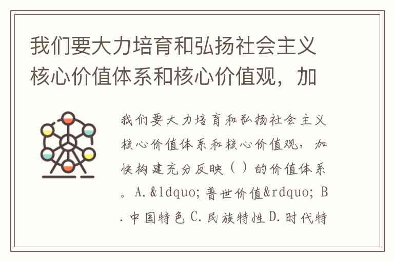 我们要大力培育和弘扬社会主义核心价值体系和核心价值观,加快构建充分反映()的价值体系。A.“普世价值” B.中国特色 C.民族特性 D.时代特征
