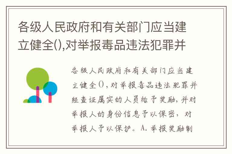 各级人民政府和有关部门应当建立健全(),对举报毒品违法犯罪并经查证属实的人员给予奖励,并对举报人的身份信息予以保密,对举报人予以保护。A.举报奖励制度 B.举报人保护制度 C举报信息核认制度 D.举报奖励和举报人保护制度