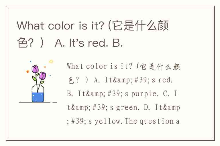 What color is it? (它是什么颜色?) A. It's red. B. It's purpie. C. It's green. D. It's yellow.