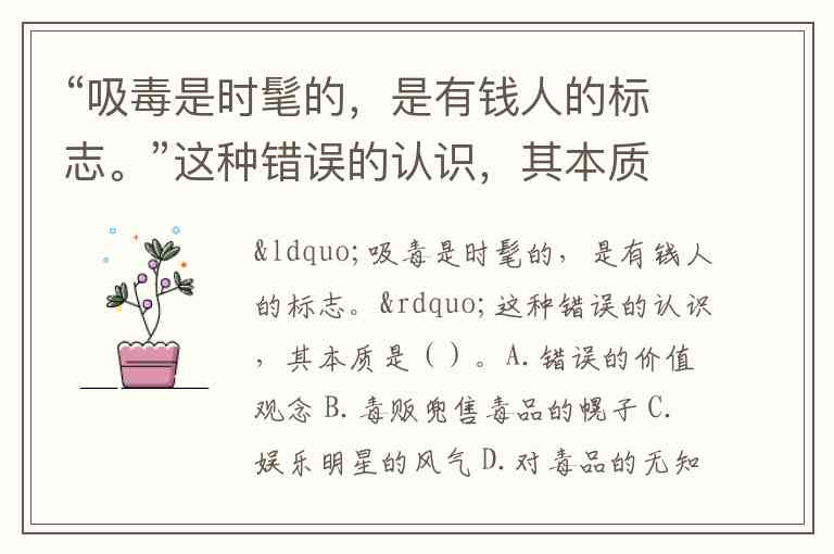 “吸毒是时髦的,是有钱人的标志。”这种错误的认识,其本质是()。A.错误的价值观念 B.毒贩兜售毒品的幌子 C.娱乐明星的风气 D.对毒品的无知