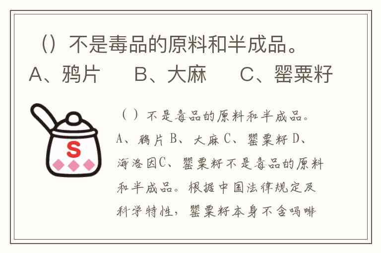 ()不是毒品的原料和半成品。A、鸦片 B、大麻 C、罂粟籽 D、海洛因