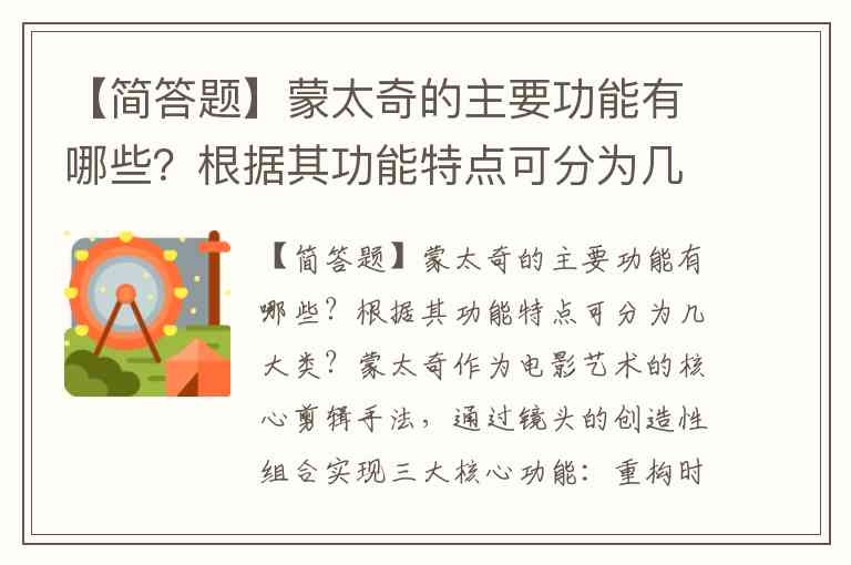 【简答题】蒙太奇的主要功能有哪些?根据其功能特点可分为几大类?