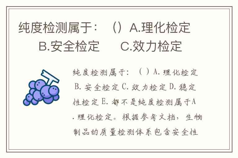 纯度检测属于:()A.理化检定 B.安全检定 C.效力检定 D.稳定性检定 E.都不是