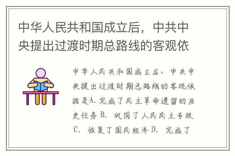中华人民共和国成立后,中共中央提出过渡时期总路线的客观依据是A.完成了民主革命遗留的历史任务 B.巩固了人民民主专政 C.恢复了国民经济 D.完成了发展国民经济的第一个五年计划