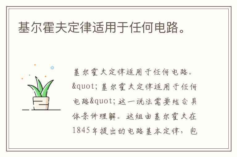 基尔霍夫定律适用于任何电路。