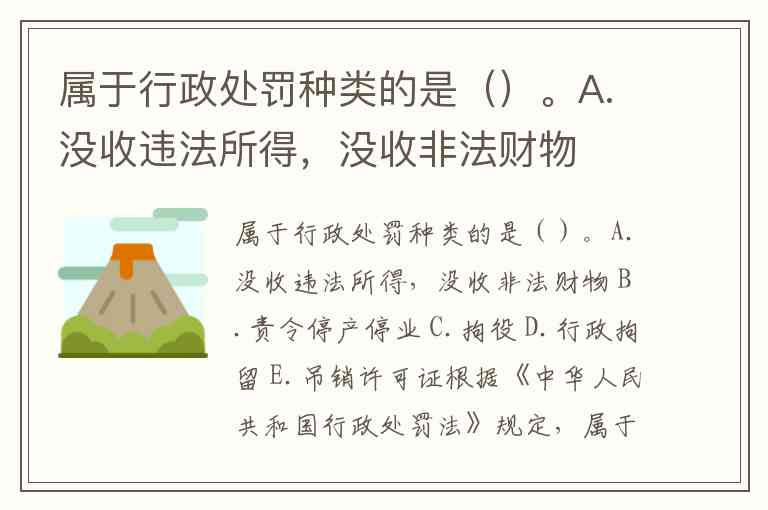 属于行政处罚种类的是()。A.没收违法所得,没收非法财物 B.责令停产停业 C.拘役 D.行政拘留 E.吊销许可证