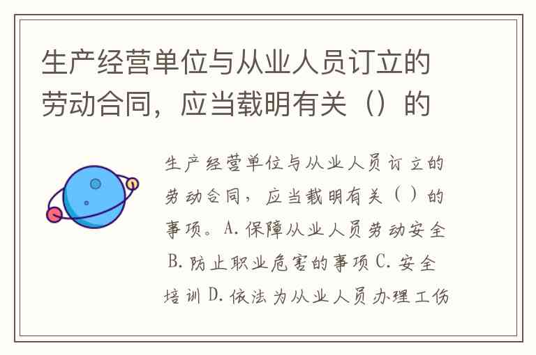 生产经营单位与从业人员订立的劳动合同,应当载明有关()的事项。A.保障从业人员劳动安全 B.防止职业危害的事项 C.安全培训 D.依法为从业人员办理工伤保险