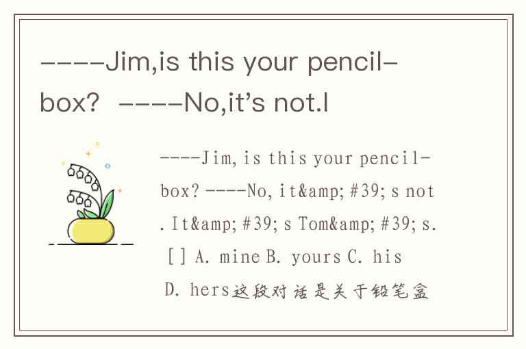 这段对话是关于铅笔盒归属的问答。第一句询问“这是你的铅笔盒吗?”,吉姆回答“不,不是。这是汤姆的。”题目要求根据上下文选择合适的代词。