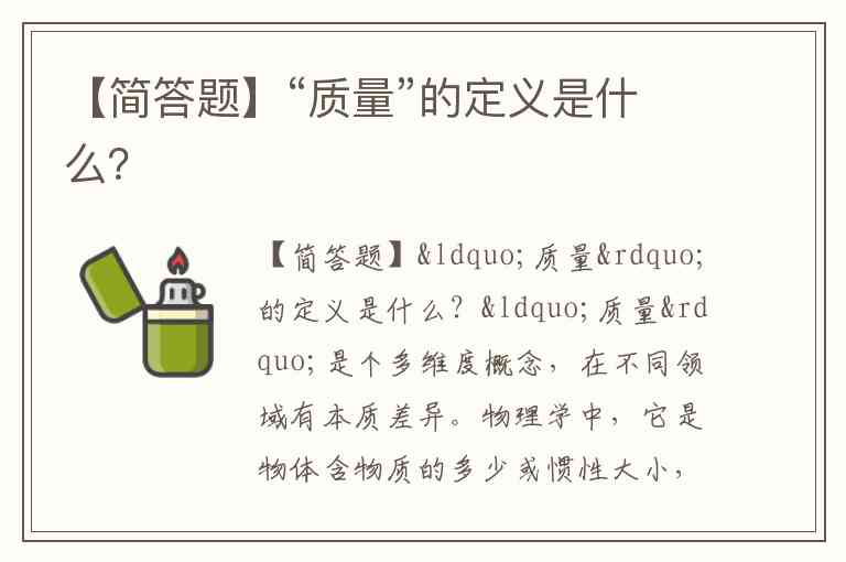 “质量”是个多维度概念,在不同领域有本质差异。物理学中,它是物体含物质的多少或惯性大小,不随形状、状态、位置改变,单位为千克(kg)。而在质量管理领域,质量指满足顾客及相关方需求的程度,涵盖功能、可靠性、价格、服务等多方面,是“大质量”概念。