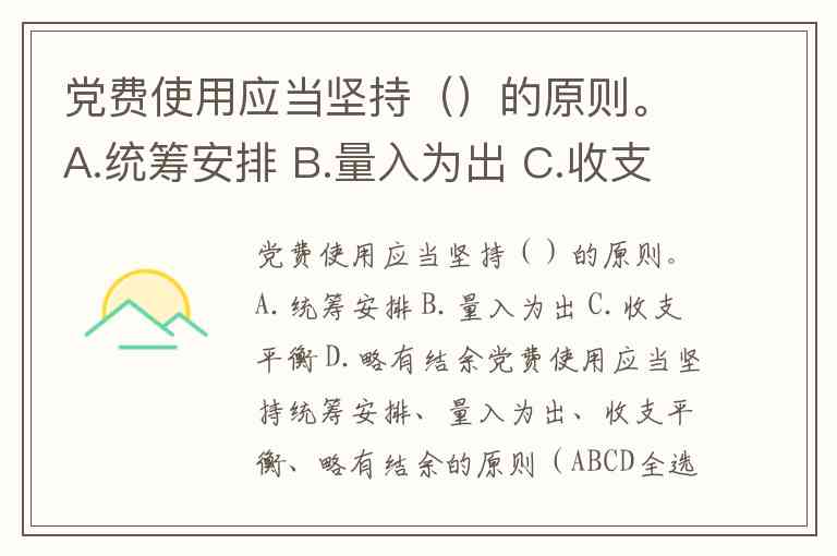 党费使用应当坚持()的原则。A.统筹安排 B.量入为出 C.收支平衡 D.略有结余