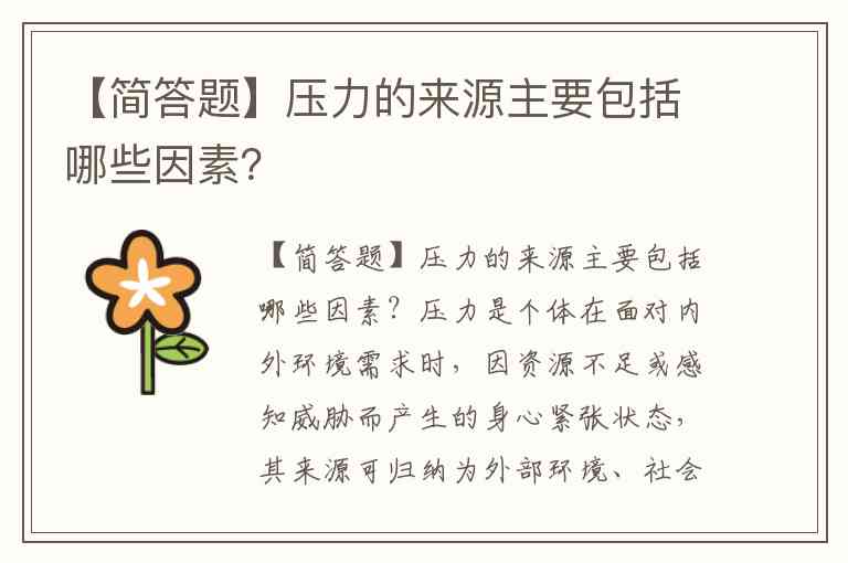【简答题】压力的来源主要包括哪些因素?