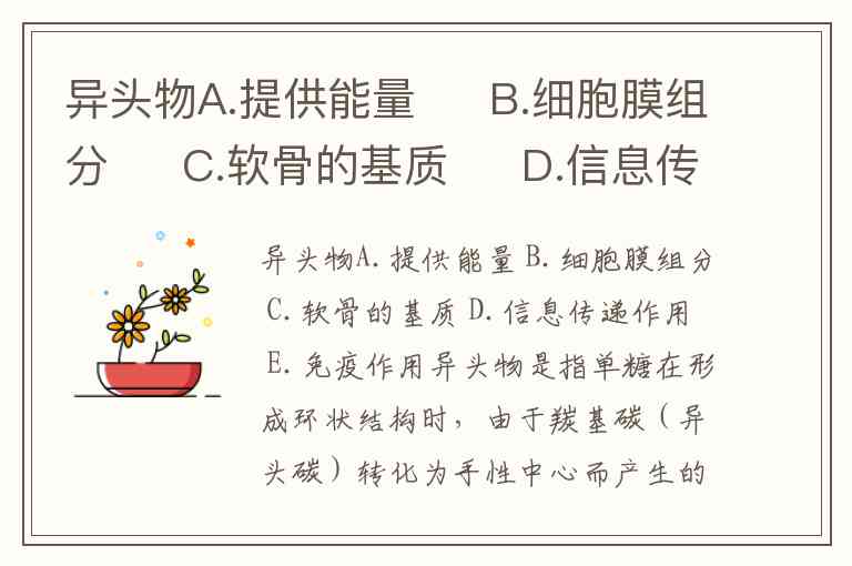 异头物A.提供能量 B.细胞膜组分 C.软骨的基质 D.信息传递作用 E.免疫作用