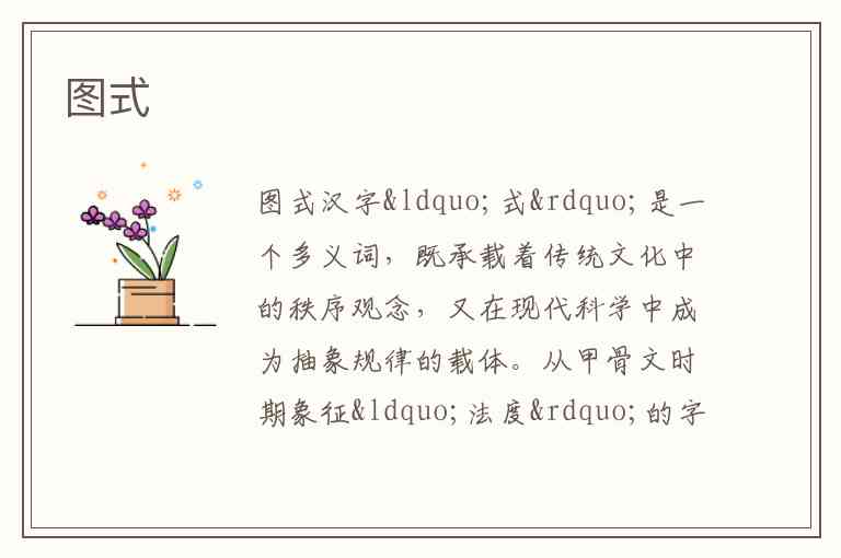 从庙堂之上的礼仪规范,到实验室里的分子结构,再到语言中的时态变化,“式”始终是人类理解世界的框架。当我们写下E=mc²这样的公式时,其实是在延续古人“以式法天地”的思维传统。这个简单的汉字背后,藏着人类对秩序的永恒追求与对变化的深刻洞察——那么,你认为未来的“式”还会演化出哪些新形态?