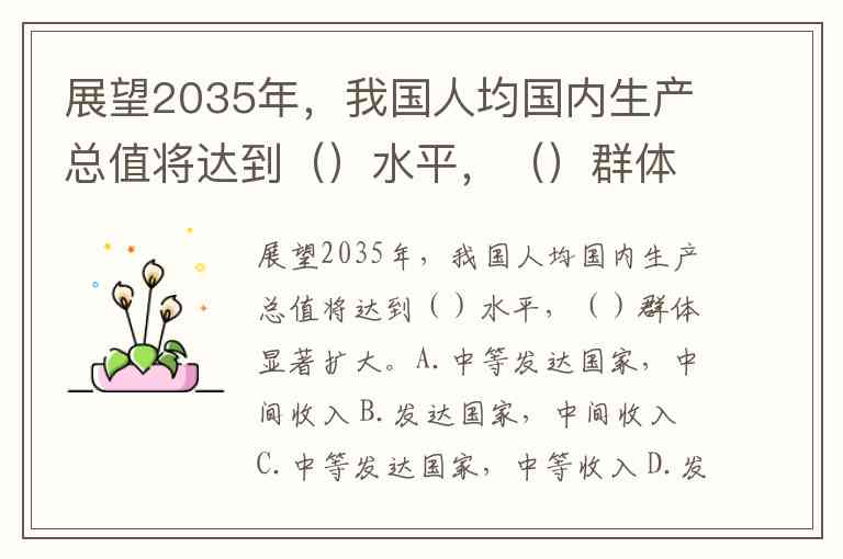 展望2035年,我国人均国内生产总值将达到()水平,()群体显著扩大。A.中等发达国家,中间收入 B.发达国家,中间收入 C.中等发达国家,中等收入 D.发达国家,中等收入