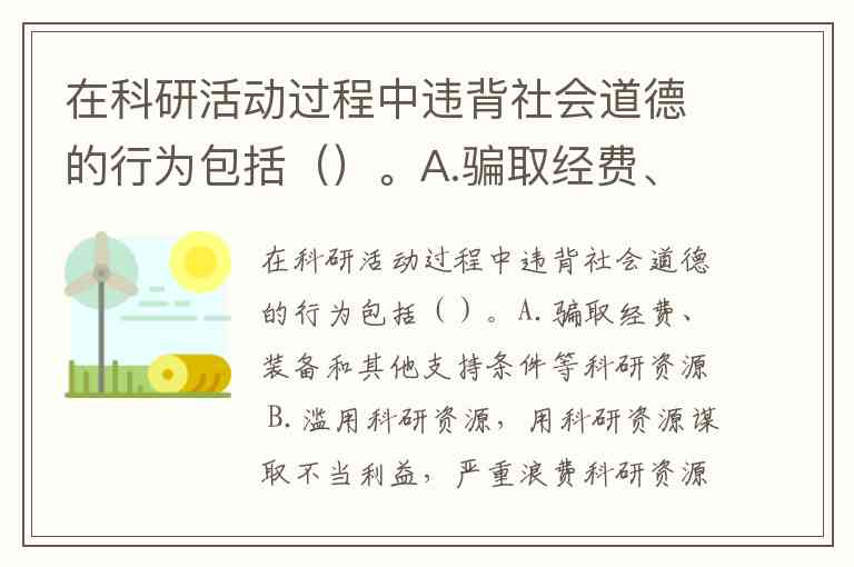 在科研活动中,骗取科研资源、滥用资源及提供虚假信息均属于违背社会道德的行为。中国科学院明确将这些行为列为科研不端,它们不仅破坏学术诚信,还可能触犯法律。