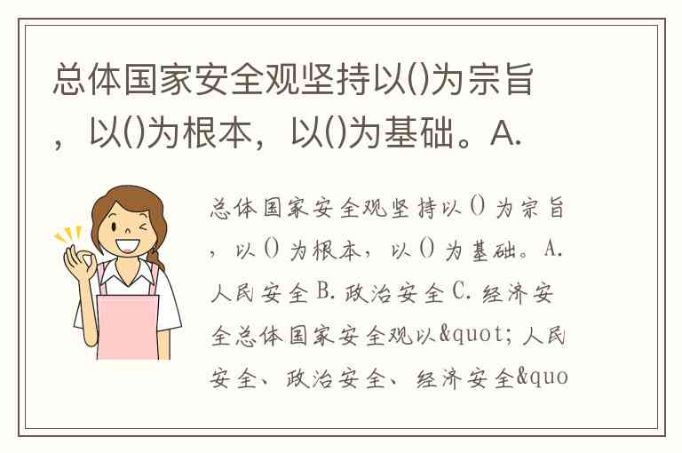 总体国家安全观坚持以()为宗旨,以()为根本,以()为基础。A.人民安全 B.政治安全 C.经济安全