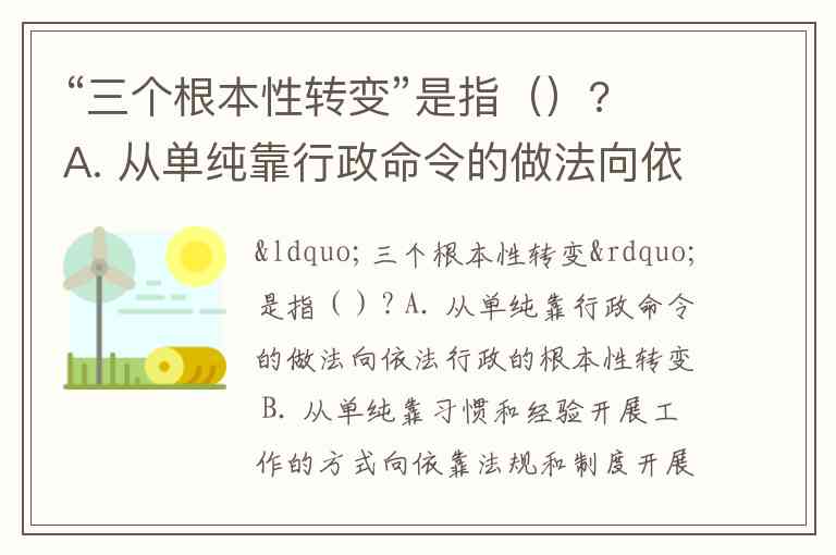 “三个根本性转变”是指()? A. 从单纯靠行政命令的做法向依法行政的根本性转变 B. 从单纯靠习惯和经验开展工作的方式向依靠法规和制度开展工作的根本性转变 C. 从突击式、运动式抓工作的方式向按条令条例办事的根本性转变。 D. 靠“土办法”开展工作