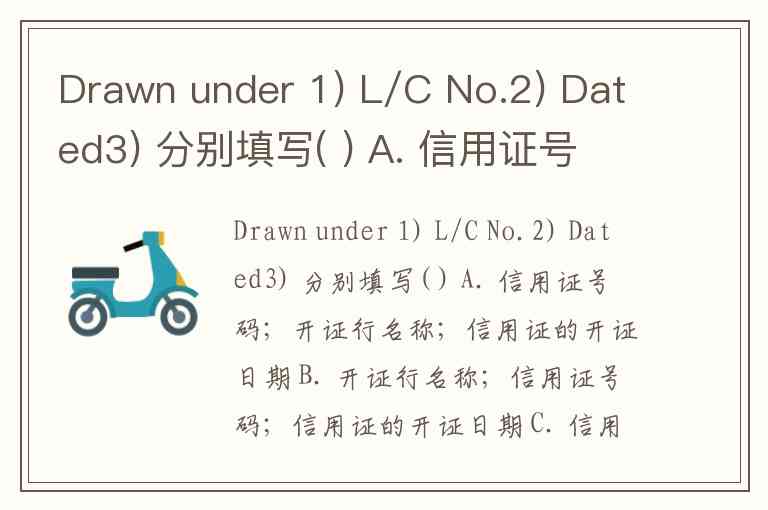 Drawn under 1) L/C No.2) Dated3) 分别填写( ) A. 信用证号码;开证行名称;信用证的开证日期 B. 开证行名称;信用证号码;信用证的开证日期 C. 信用证号码;信用证的开证日期;开证行名称;