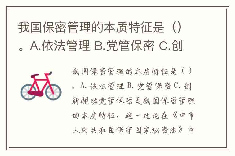 我国保密管理的本质特征是()。A.依法管理 B.党管保密 C.创新驱动