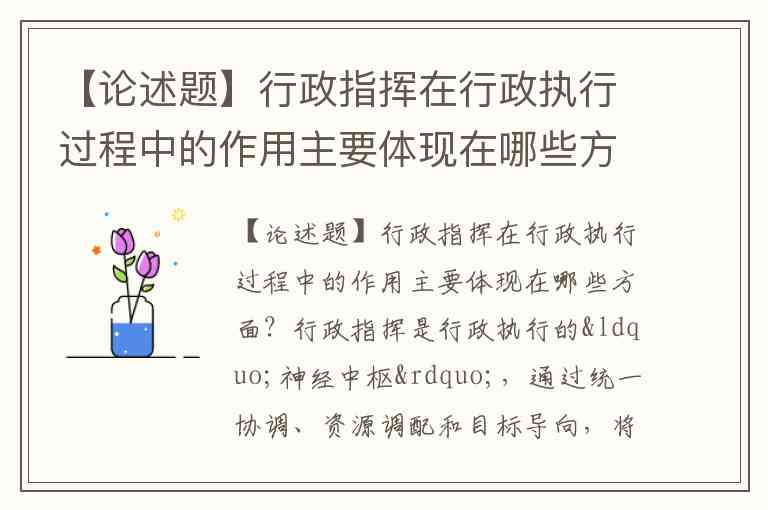 【论述题】行政指挥在行政执行过程中的作用主要体现在哪些方面?