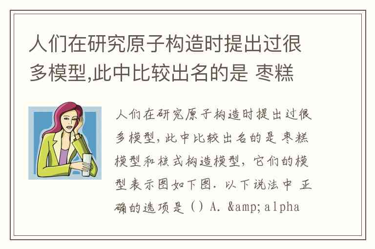 人们在研究原子构造时提出过很多模型,此中比较出名的是 枣糕模型和核式构造模型, 它们的模型表示图如下图. 以下说法中 正确的选项是 ( ) A. α粒子散射实验与枣糕模型和核式构造模型的成立没关 B. 科学家经过 α粒子散射实验否认了枣糕模型,成立了核式构造模型 C. 科学家经过 α粒子散射实验否认了核式构造模型,成立了枣糕模型 D. 科学家经过 α粒子散射实验否认了枣糕模型和核式构造模型,