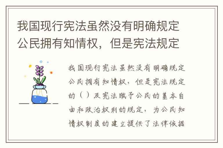 我国现行宪法虽然没有明确规定公民拥有知情权,但是宪法规定的()及宪法赋予公民的基本自由和政治权利的规定,为公民知情权制度的建立提供了法律依据。A.罪刑法定原则 B.法律面前人人平等原则 C.人民主权原则 D.诚实信用原则