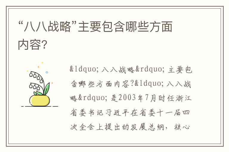 “八八战略”主要包含哪些方面内容?