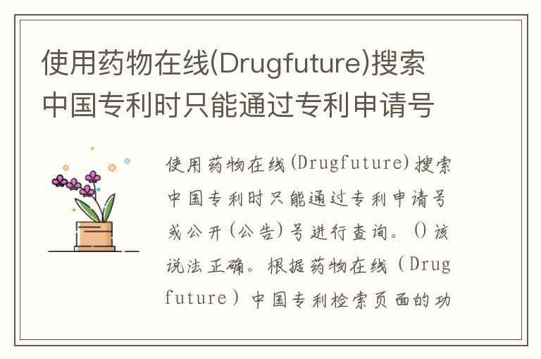 使用药物在线(Drugfuture)搜索中国专利时只能通过专利申请号或公开(公告)号进行查询。()