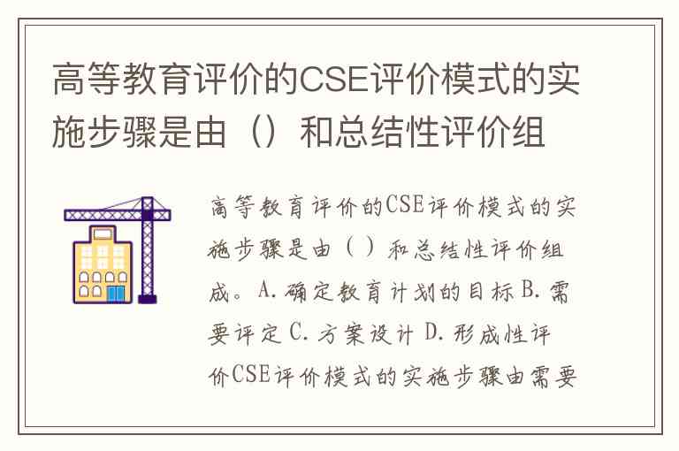 高等教育评价的CSE评价模式的实施步骤是由()和总结性评价组成。A.确定教育计划的目标 B.需要评定 C.方案设计 D.形成性评价