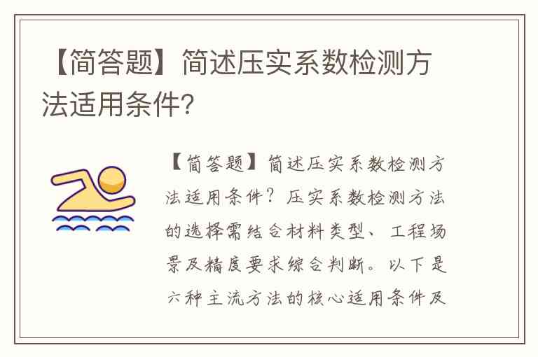 压实系数检测方法的选择需结合材料类型、工程场景及精度要求综合判断。以下是六种主流方法的核心适用条件及特点: