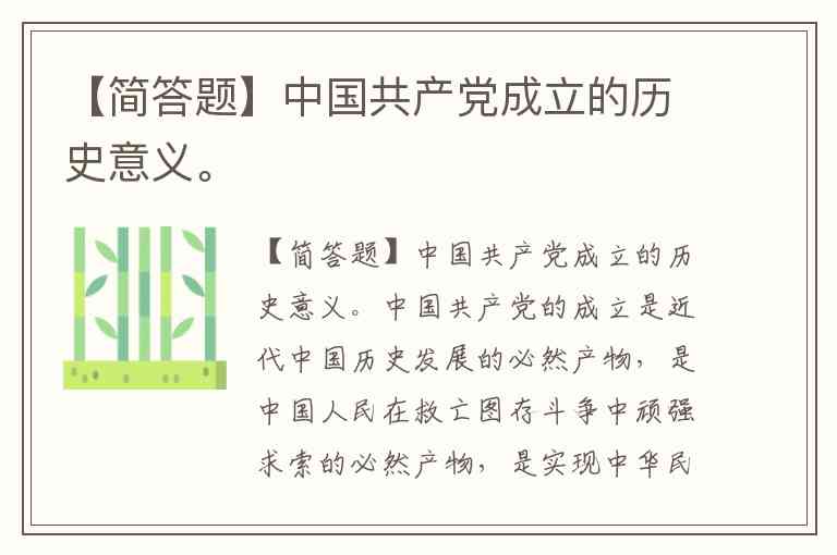 中国共产党的成立是近代中国历史发展的必然产物,是中国人民在救亡图存斗争中顽强求索的必然产物,是实现中华民族伟大复兴的必然产物,正如习近平总书记指出的"开天辟地的大事变",深刻改变了近代以后中华民族发展的方向和进程、中国人民和中华民族的前途和命运、世界发展的趋势和格局。