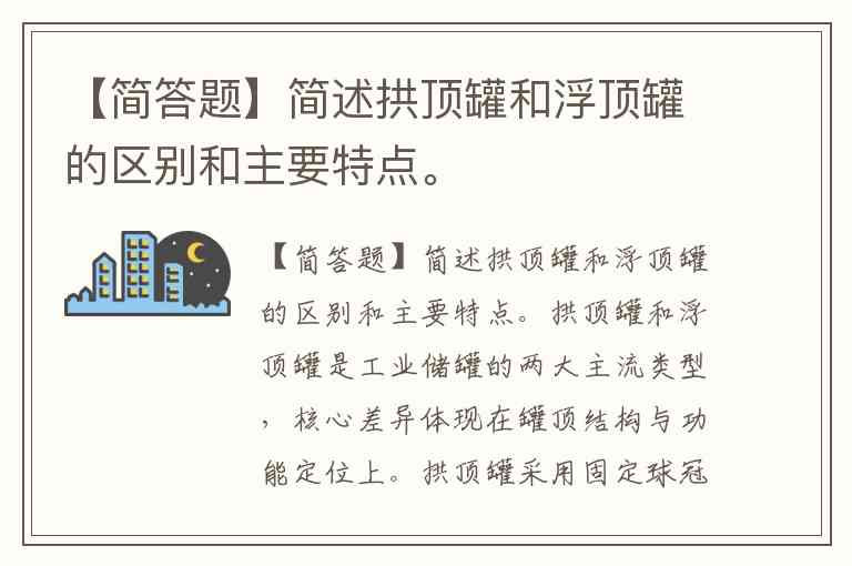 【简答题】简述拱顶罐和浮顶罐的区别和主要特点。